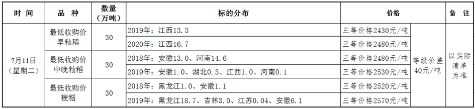 7月11日最低收购价稻谷竞价销售交易公告