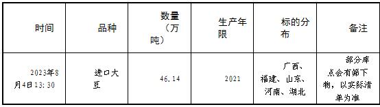 受中储粮油脂有限公司委托,2023年8月4日13:30在国家粮食和物资储备局粮食交易协调中心及联网的各省(区、市)国家粮食交易中心组织开展进口大豆竞价交易,请交易会员通过国家粮食交易中心官网()“用户中心”,登录国家粮食交易平台,在专场列表中选择“政策性粮食轮换交易”参与交易。现就有关事项公告如下(重点提示内容详见加粗字体部分)